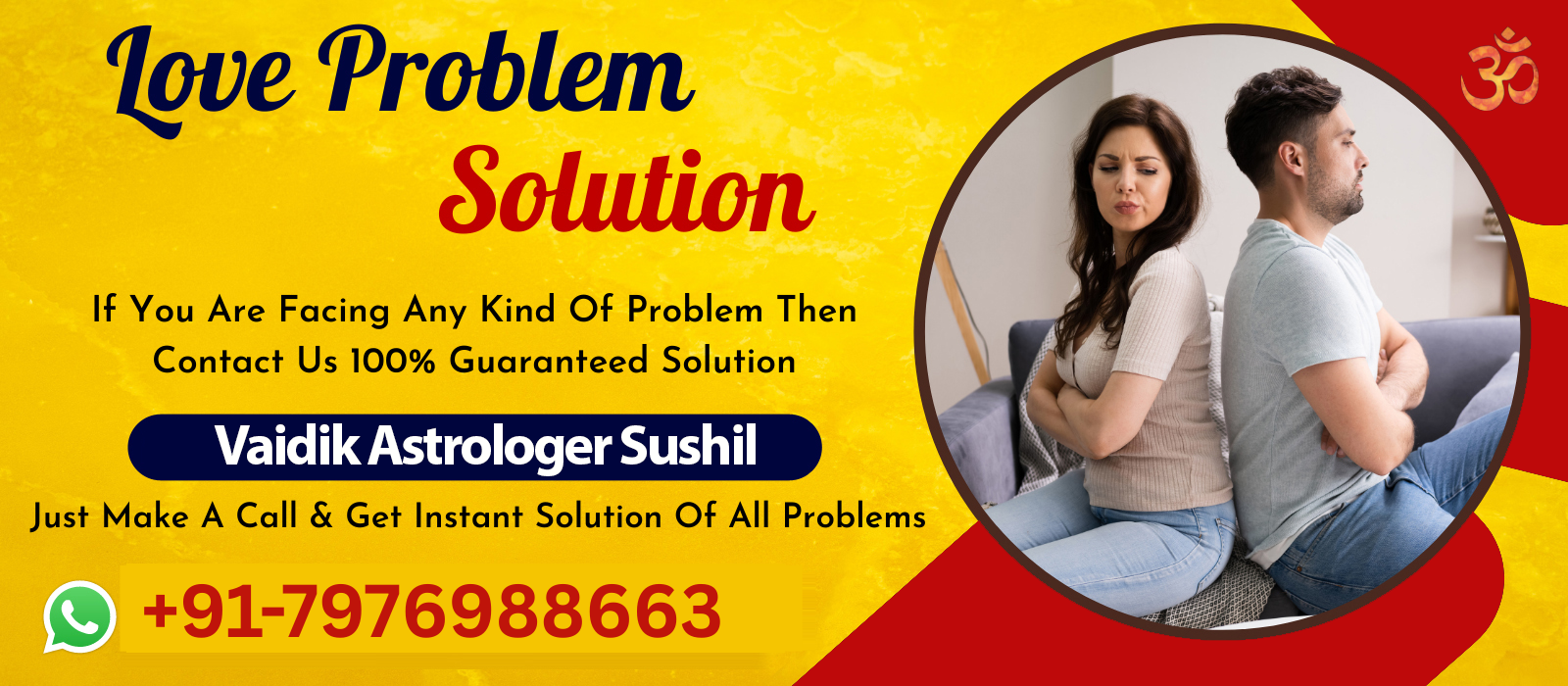 If you are facing any problem in your life then feel free to call Vaidik Astrologer Sushil Ji at +91-7976988663, he will solve your problem very soon and provide you with a happy life. Vaidik Astrologer Sushil Ji is very expert in Love back, if you love someone and by some misunderstanding, you lost him/her then don't worry about it just contact to Love Back Specialist Vaidik Astrologer Sushil Ji he will solve this problem very easily and you will get your Love for forever in your life.